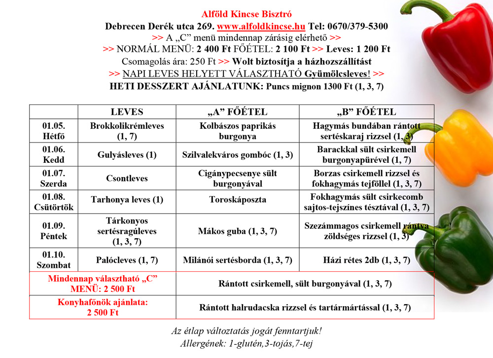 Heti menü - Alföld Kincse Bisztró - Debrecen
